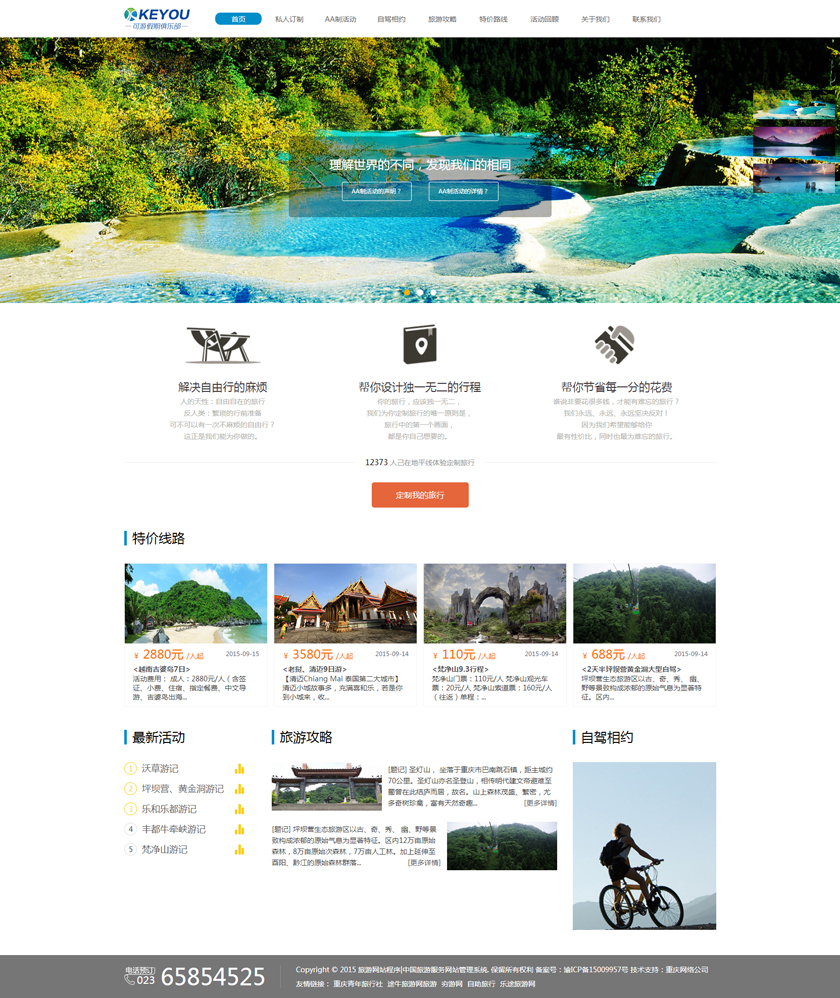Project Description 6人游旅行网隶属于北京六人游国际旅行社有限公司。打造“为爱出行”:专为家庭,朋友,情侣间的旅行,提供私家小团精品游。打造高品质的旅行产品,解决传统跟团游和自由行存在的问题,将旅行服务做到臻善臻美。 Official website address 宁德http://www.keyoujq.com I want to share